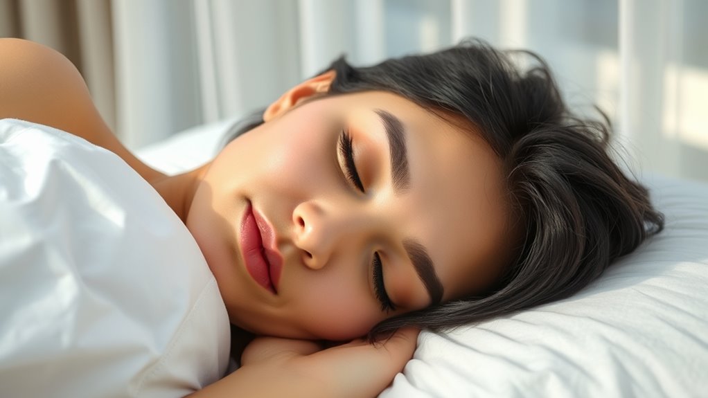 Getting enough quality sleep is essential for your skin’s health and youthful look. When you rest well, your skin repairs itself, boosts collagen production, and improves circulation, giving you a brighter, more resilient complexion. Lack of sleep causes dullness, dark circles, fine lines, and sagging, making you look tired and older. Prioritizing restful sleep supports your skin’s natural renewal process. Keep going to discover how sleep truly transforms your skin and boosts your natural glow.