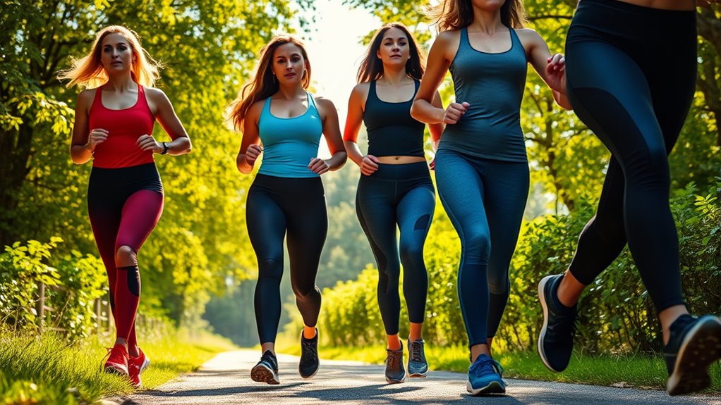 When choosing ankle weights for walking, it’s important to contemplate how well they match your exercise needs. I recommend selecting weights that are adjustable to fit different routines, preventing discomfort or injury. The weights should be lightweight and comfortable enough for extended walks, ensuring they don’t restrict your movement. Look for models with secure, easy-to-use straps that stay in place, helping you maintain proper form and safety throughout your walk. It’s also wise to choose weights within a suitable range—typically 1 to 5 pounds per ankle—to add resistance without overloading, which could harm your gait. Ultimately, consider materials that are breathable and moisture-absorbing, keeping your feet dry and preventing chafing as you walk. Proper exercise compatibility enhances comfort and safety.