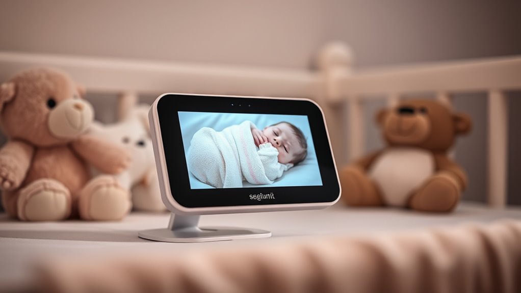 Choosing the right baby monitor can truly bring peace of mind—did you know that 89% of parents feel more secure with a reliable monitor? With options that suit every need, from simple audio to advanced video and motion alerts, you’re better equipped to keep your little one close and safe. Remember, the right monitor isn’t just a gadget; it’s a comforting presence that helps you stay connected, no matter where you are.