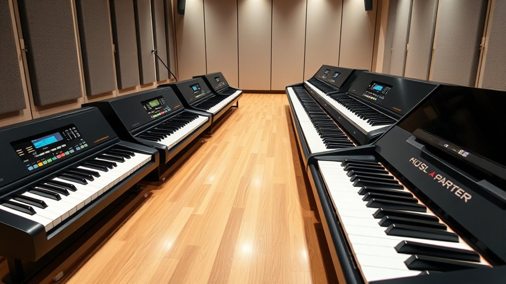 Many beginner digital pianos offer upgrade options and expandable sound libraries, transforming your instrument into a versatile powerhouse. I love how some models allow you to add new voices via software updates or external sound modules, making them feel like a full orchestra at your fingertips. This flexibility means you won’t outgrow your piano quickly, and you can continuously evolve your sound palette as your skills grow.