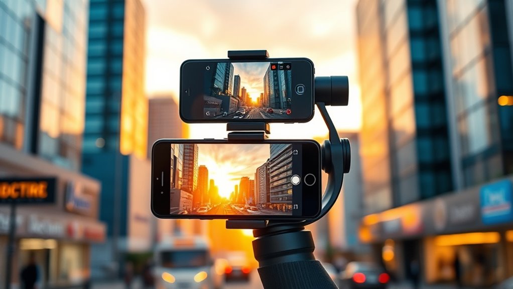 If you want smooth, professional shots with your smartphone in 2025, I recommend checking out the top camera gimbals like the DJI Osmo Mobile SE, Osmo Mobile 6, and Hohem iSteady X3 SE. These models offer advanced stabilization, portability, and smart features for creative shoots. They support various smartphones and even some compact cameras, making filming easier and more stable. Keep exploring to find out which gimbal fits your needs best.