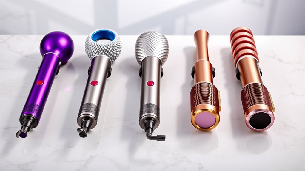 Choosing the right Dyson Airwrap alternative starts with ensuring it suits your specific hair type. Whether you have straight, wavy, curly, or coily hair, the device must work well with your texture to give you the best results. Look for models with adjustable heat and airflow settings so you can customize the styling process based on your hair’s sensitivity and porosity. Attachments matter too—volumizing brushes work better for fine hair, while diffusers are ideal for curly styles. Make sure the technology, like airflow and heat control, aligns with your hair’s condition to avoid damage. Ultimately, pick a model that offers versatile styling options suited to your hair’s length and thickness for efficient, damage-free styling.