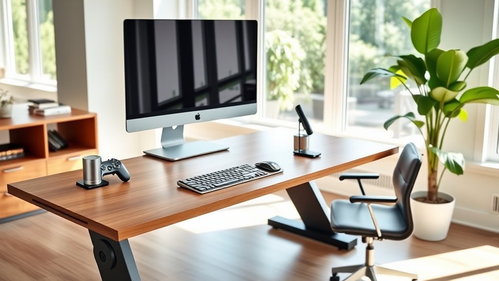 Choosing the right electric standing desk converter truly transforms your workspace and boosts your health. While it might seem like a simple upgrade, evidence suggests that alternating between sitting and standing can reduce discomfort and improve focus. But remember, no one-size-fits-all solution exists. It’s worth investing time to explore options that fit your needs—because a well-chosen converter isn’t just about convenience, it’s an investment in your well-being and productivity.
