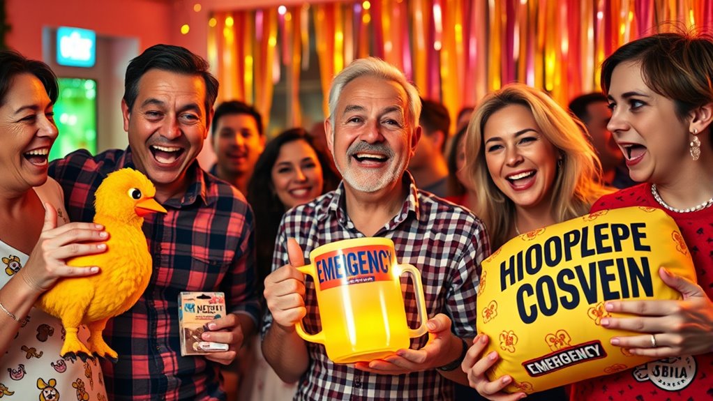 Choosing the perfect gag gift is like planting a seed of laughter—each one sprouting joy in unexpected ways. Whether it’s a silly candle or humorous socks, these gifts symbolize our shared love for humor and connection. When you give one, you’re not just sharing a joke; you’re planting a moment of happiness that blooms long after the laughter fades. So go ahead, pick the funnies—they’re the seeds of unforgettable memories.
