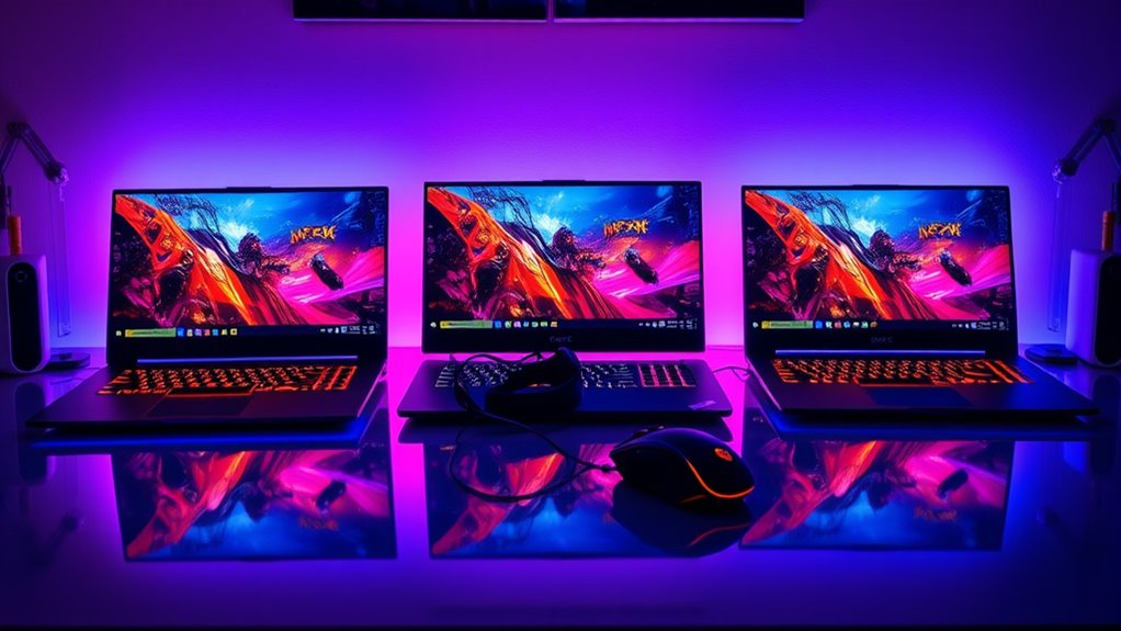 Honestly, it might seem like a myth that you can get serious gaming power under $1000, but these laptops prove otherwise. With the right specs, like Ryzen 5 CPUs and RTX 4050 graphics, you can enjoy smooth gameplay without breaking the bank. So, don’t dismiss budget options—they’re more capable than you think. It’s worth exploring these choices, because sometimes, the best gaming experiences come from surprising places.
