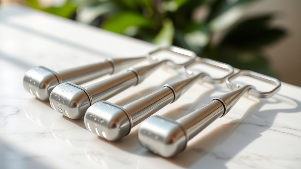 If you want to refresh and revitalize your skin, I recommend trying the top five ice rollers designed for face benefits. These tools boost circulation, reduce puffiness, and help tighten your skin for a more youthful glow. They also soothe tired eyes and improve absorption of skincare products. Made from safe, durable materials, they’re easy to use and clean. Keep going, and I’ll share how each one can help you achieve a radiant, revitalized complexion.