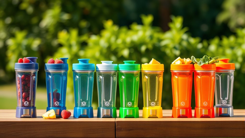 Considering the price and warranty options is essential when selecting a portable blender for travel, as these factors directly impact your investment’s value and peace of mind. Portable blenders typically range from $80 to over $150, depending on features and brand reputation. It’s important to check if the blender offers a warranty—usually 1 year or longer—that covers defects, malfunctions, or parts replacements. Carefully review the warranty details to understand what’s included and whether registration is required. Keep in mind that higher-priced models often come with extended warranties or better support, offering greater long-term protection. Comparing warranty policies across brands helps you find a balance between affordability and the assurance of reliable customer service. This ensures you choose a blender that fits your needs and budget.