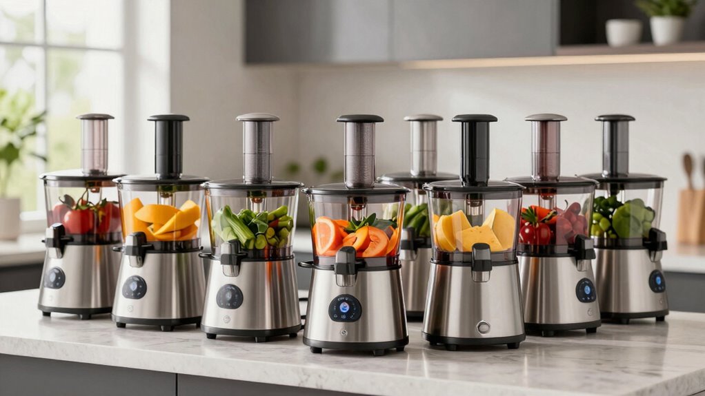 I’ve found the top-rated cold press juicers for 2026, including models like the Hurom H320, Canoly C16, and Ninja JC151, all known for their high juice yield, quiet operation, and versatile functions. These juicers feature large feed chutes, durable build quality, and easy cleaning options, making them perfect for everyday use. If you’re curious about which options fit your needs and want detailed insights, stay tuned to discover more.