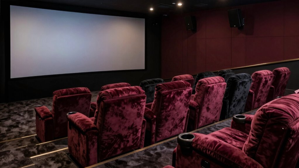 Since comfort is at the core of a great home theater experience, adjustable features like power recline, headrest, and footrest play a crucial role in customizing your seating. These features let you find the perfect angle for viewing, whether you prefer a slight recline or a fully laid-back position. Memory buttons are especially handy, saving your favorite angles for quick adjustments. Multi-way adjustable recliners support ergonomic positioning, which reduces strain and helps maintain good posture during long movies or gaming sessions. Integrated USB and Type-C ports are conveniently positioned to match adjustable headrests, making device charging effortless at different angles. The range of adjustment angles, from 140° to 180°, directly impacts relaxation, giving you the flexibility to tailor your seating for maximum comfort.