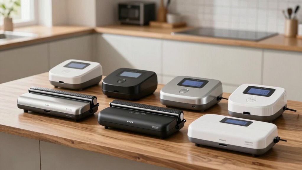 Ease of use is a crucial factor when selecting a vacuum sealing machine, as it directly impacts how smoothly and quickly I can get the job done. Devices with automatic or one-touch operation make sealing straightforward, eliminating the need for manual adjustments. Built-in cutters and bag storage simplify prep work, saving time and effort. Clear, intuitive control panels and preset modes help me operate the machine confidently without needing technical expertise. Lightweight, compact designs improve portability, especially for handheld or portable models, making them easier to handle. Fast sealing times, typically within 5-15 seconds, speed up the process and keep things efficient. Overall, user-friendly features ensure that sealing becomes a quick, hassle-free task, making these machines a great addition to any kitchen.