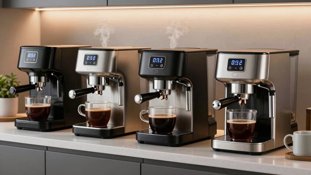 Imagine pouring a delicate, flavored espresso into a sleek thermal carafe—that’s exactly what these makers excel at. Yes, thermal coffee makers are perfect for brewing specialty or flavored coffees. They preserve the rich aroma and subtle nuances, keeping your brew fresh and vibrant. I’ve found they trap every aroma, so your favorite flavored coffee tastes just as exquisite hours later, making every sip feel like the first.