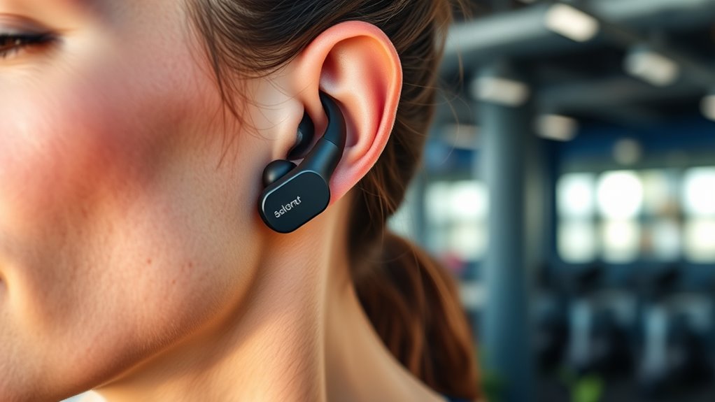 A secure ear hook design is essential for staying comfortable and focused during intense workouts. It keeps earbuds firmly in place, even during running, jumping, or cycling. I look for ear hooks made from flexible, soft materials that prevent slipping without causing discomfort. Adjustable or rotatable hooks are a plus, as they let me customize the fit to my ear shape, improving stability. When paired with waterproof ratings like IPX7 or higher, they protect against sweat and water, ensuring longevity. A well-designed ear hook also distributes pressure evenly around my ear, reducing fatigue during long sessions. This combination of security and comfort lets me stay immersed in my workout music without constantly adjusting my earbuds, making my exercise sessions more enjoyable and distraction-free.