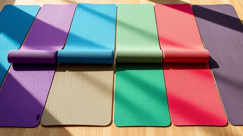 I recommend a yoga mat that’s around 4 to 6mm thick for beginners. This thickness offers a great balance between cushioning and stability, helping you avoid joint strain while maintaining good grip. Thinner mats are more portable but can be less comfortable, while thicker mats might reduce your balance. I’ve found that this range provides the comfort and safety you need to build confidence in your practice.