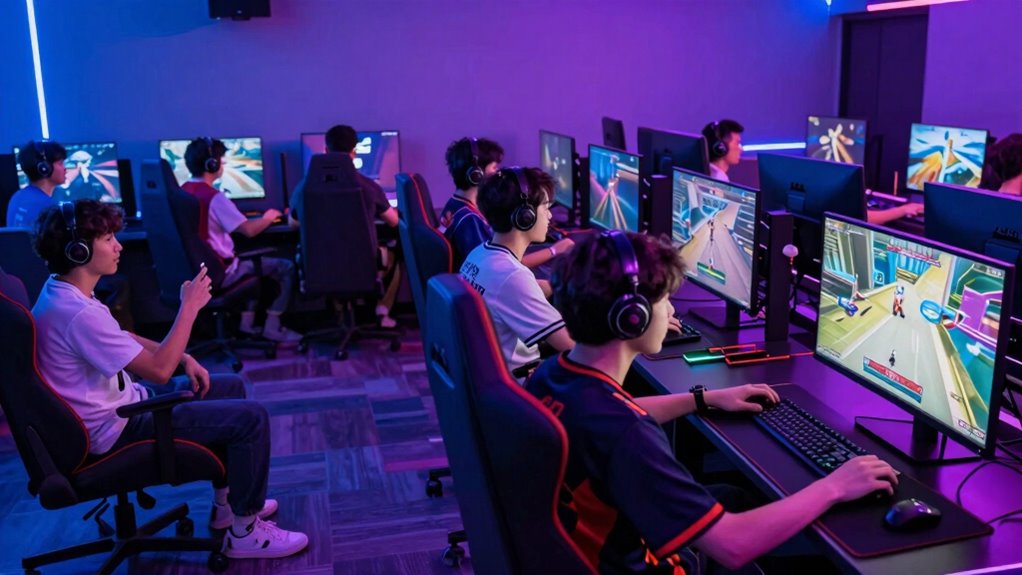 Implementing cross-platform features presents technical challenges like hardware integration and network compatibility. You need to guarantee different devices, from consoles to PCs, can run the game smoothly together, which involves syncing hardware capabilities. You also face network compatibility issues, requiring robust servers and protocols to prevent lag and disconnects. Overcoming these hurdles demands complex coding, extensive testing, and ongoing updates to deliver a seamless multiplayer experience across all platforms.