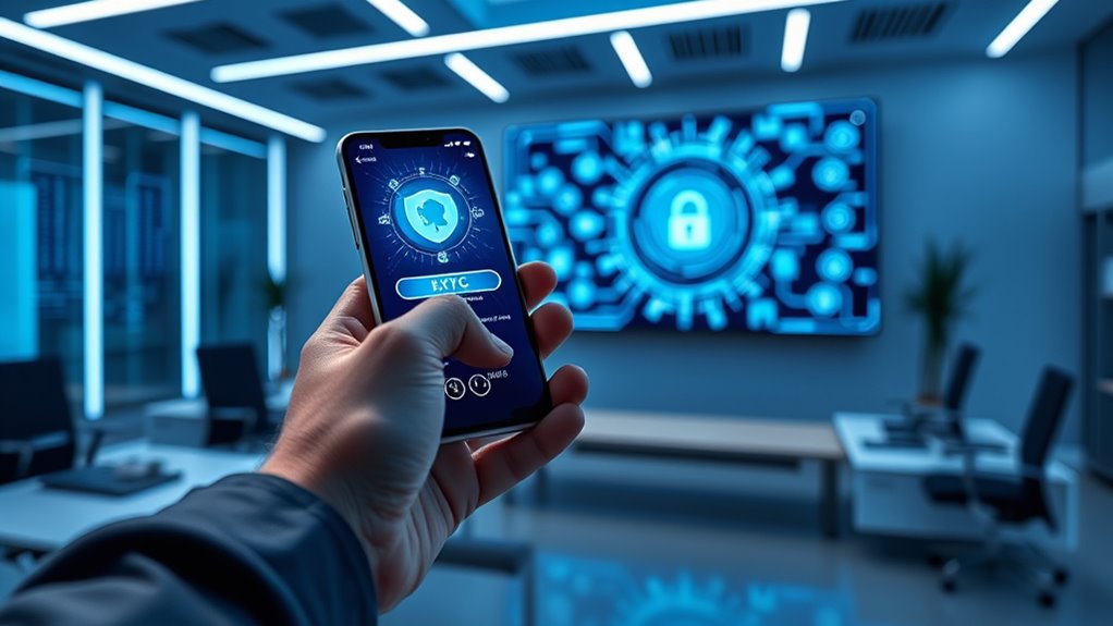 Imagine a vault that opens instantly, secure and seamless—that’s what biometric authentication offers for KYC. You’re leveraging cutting-edge tech like biometric data and blockchain verification to enhance security and speed. These innovations make verifying identities faster and more reliable, reducing fraud and compliance costs. As you adopt biometric authentication and blockchain, you’ll create a trust bridge with customers, ensuring smoother, safer transactions while staying ahead in the evolving digital landscape.