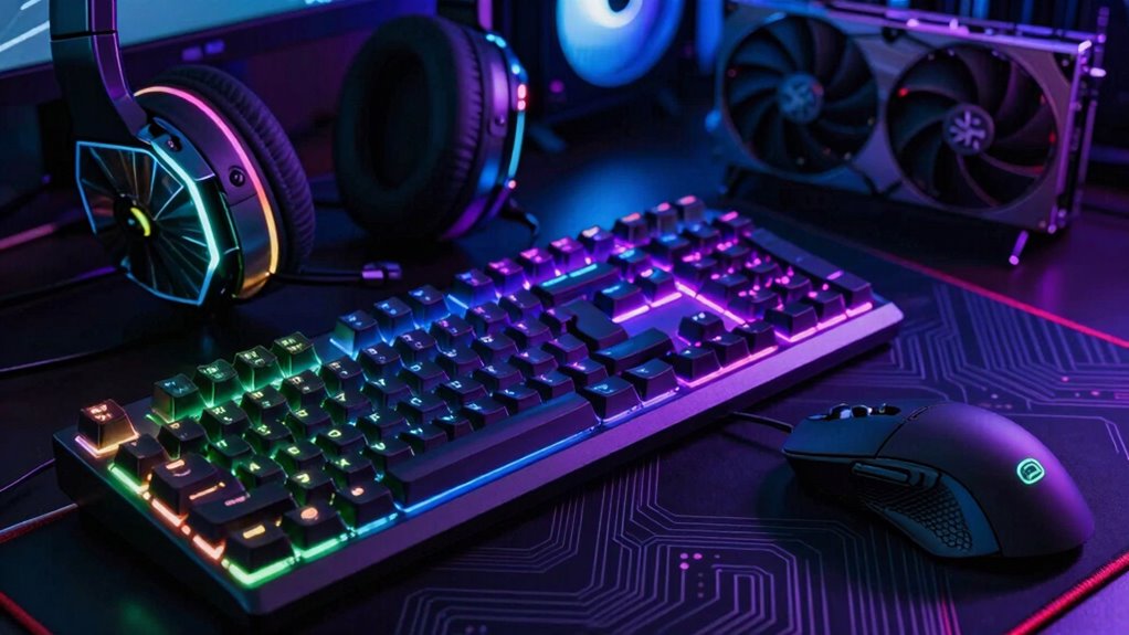 Specialized gaming peripherals boost your performance by enhancing comfort through ergonomic design, allowing you to play longer without fatigue. They also improve precision with sensory feedback, giving you real-time responses to in-game actions. This combination helps you react faster, aim more accurately, and stay focused, giving you a competitive edge. By tailoring hardware to your gaming needs, you can perform at your best and enjoy a more immersive experience.