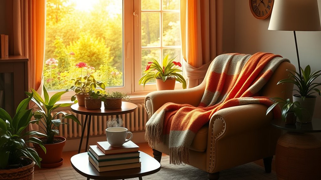 To prevent holiday stress before it starts, you should practice mindful breathing daily to stay centered and reduce anxiety. Incorporate gratitude journaling into your routine to foster positivity and shift focus away from stressors. Planning ahead for gifts and events also helps avoid last-minute panic. By staying present with mindful breathing and cultivating gratitude, you set a calm, balanced tone, making the holiday season more enjoyable and less overwhelming.
