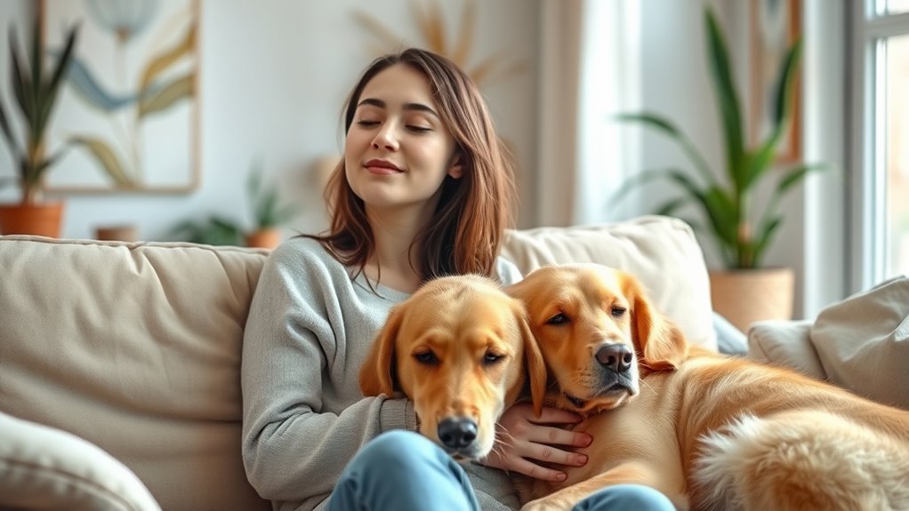 Pet therapy combines the presence of animals to support your mental health by reducing stress, boosting mood, and building confidence. Interacting with therapy animals offers a calming, nonjudgmental presence that helps you feel safe and connected. Petting and bonding with animals release oxytocin, which enhances emotional resilience and self-esteem. These interactions can make difficult times easier and foster a sense of calm. Keep exploring how animals can be your emotional anchors and support system.